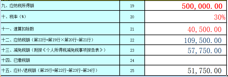 那么全年应纳税额=150*35%-6.55-0.6=45.35